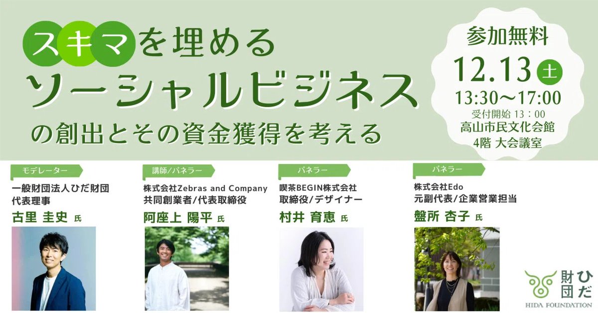 「地域課題はビジネスで解決できる。地域を動かす企業のリアルを知る3時間」に、Z&Cの阿座上さんが登壇します