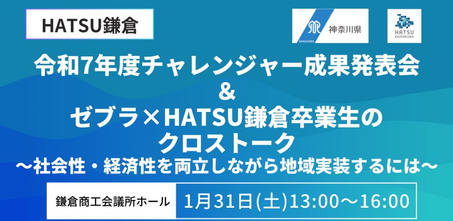 HATSU鎌倉令和7年度チャレンジャー成果発表会&ゼブラ×HATSU鎌倉卒業生のクロストークにZ&Cの田中さんが登壇します。